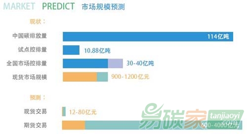 自2013年始,全國已開啟七個(gè)碳交易試點(diǎn),并計(jì)劃將于2016年啟動(dòng)全國碳市場;屆時(shí)全國碳市場排放量可能涉及30至40億噸,國家發(fā)展改革委預(yù)計(jì)到2020年,每年碳排放許可的期貨市場價(jià)值達(dá)到600億~4000億元,現(xiàn)貨市場規(guī)模10億~80億元。中國將穩(wěn)坐全球第二大碳市場交椅,并極有可能成為全球最大的碳市場,未來市場空間巨大。