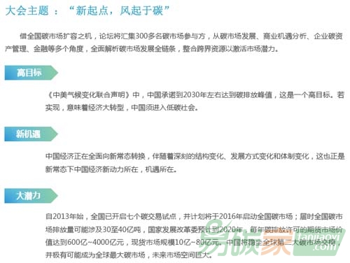 本屆大會(huì)主題為“新起點(diǎn)、風(fēng)起于碳”,借全國碳市場擴(kuò)容之機(jī),論壇將匯集200多名參會(huì)代表,從多個(gè)角度,全面分析中國碳市場發(fā)展之路;推動(dòng)大產(chǎn)業(yè)的全面迸發(fā)。