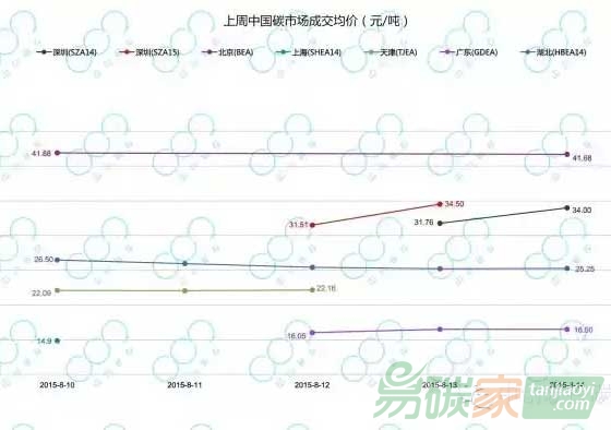 上周(2015年8月10至14日),六個試點(diǎn)碳