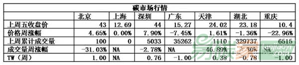深圳、天津市場上周均有小幅增長;重慶市場繼續(xù)較大幅度下跌;其余市場配額價格小幅回落。