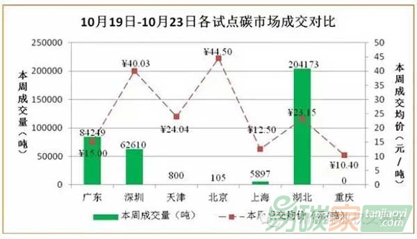ccer成交1.92萬噸。湖北碳市場上周共成交配額20.42萬噸,成交均價為23.15元/噸,較前一周下跌0.30%。天津碳市場上周配額成交量為800噸,成交均價為24.04元/噸,較前一周上漲2.08%。