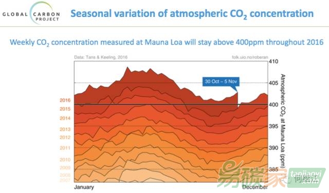 2016年,全年的二氧化碳濃度都會高于400ppm,這是首次。
