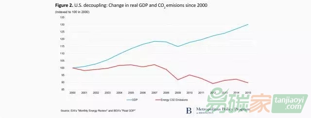 圖2: 2000年以來美國(guó)碳排放和實(shí)際GDP變化關(guān)系