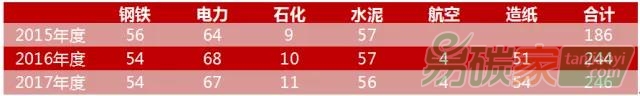 表1:2015-2017年度各行業(yè)控排企業(yè)數(shù)量