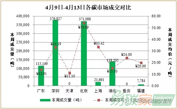 福建碳市場上周共成交配額7784噸,成交均價為20.00元/噸,較前一周上漲17.23%。重慶、天津、