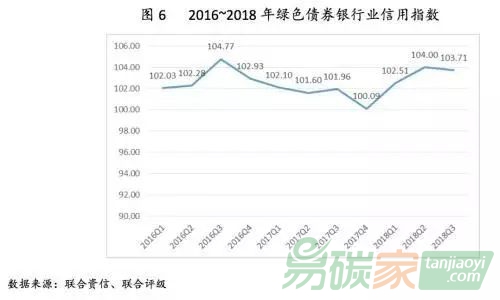2018年三季度以來(lái),債券市場(chǎng)信用事件頻發(fā),資金面趨緊,債券到期壓力上升,在這一背景下,三季度綠色債券全行業(yè)綜合信用指數(shù)小幅下行,延續(xù)了二季度的下降趨勢(shì),三季度綜合指數(shù)下滑至102.03。分要素來(lái)看,主體要素因發(fā)行人財(cái)務(wù)表現(xiàn)下滑而較上期下降了0.50%,整體表現(xiàn)穩(wěn)定;債項(xiàng)方面,因償付壓力上升,債項(xiàng)要素較上期表現(xiàn)大幅下滑5.29%;市場(chǎng)表現(xiàn)較為穩(wěn)定,發(fā)債利差有所縮小,二級(jí)市場(chǎng)交易行情穩(wěn)定,市場(chǎng)表現(xiàn)整體較上期上漲2.94%;最后宏觀要素方面,盡管經(jīng)濟(jì)增速較上季度6.8%小幅下滑至6.7%,但PMI保持穩(wěn)中向好,無(wú)風(fēng)險(xiǎn)利率下行,社會(huì)融資水平趨向合理,宏觀要素較二季度明顯穩(wěn)中向好,扭轉(zhuǎn)了二季度的頹勢(shì),整體上行3.18%。綜合表現(xiàn)下,三季度綜合指數(shù)為102.03,比上季度下滑0.10個(gè)百分點(diǎn)。