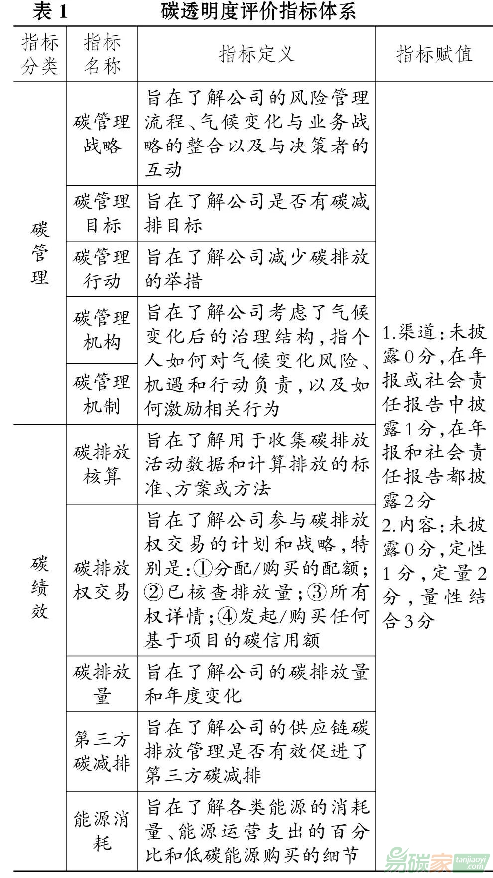 碳透明度評(píng)價(jià)指標(biāo)體系詳見(jiàn)表1。