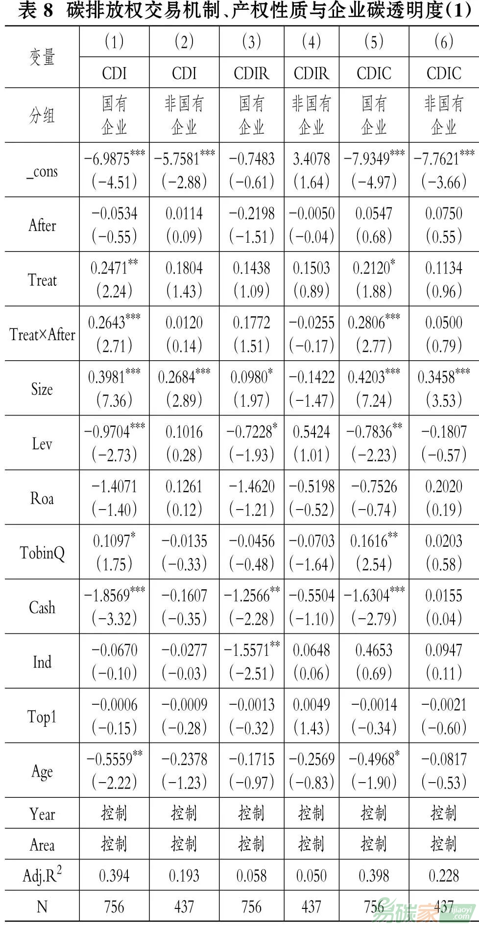(三)碳排放權(quán)交易機(jī)制、產(chǎn)權(quán)性質(zhì)與企業(yè)碳透明度