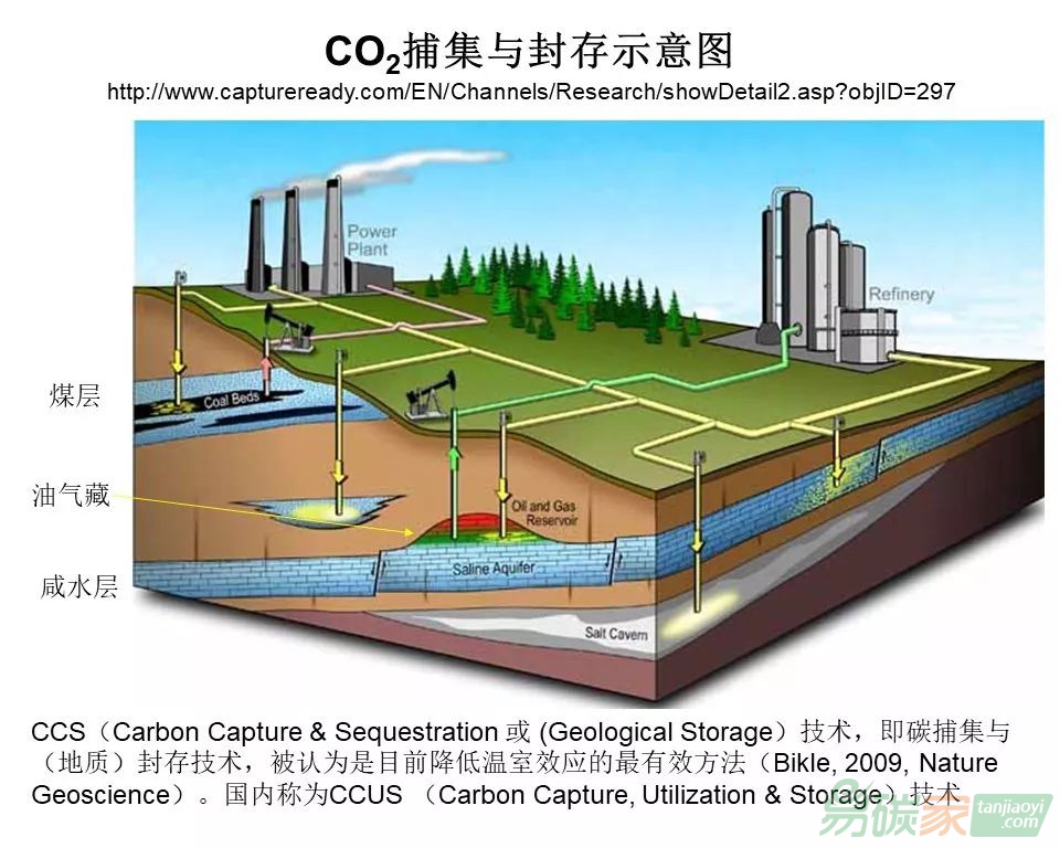 美國能源部長發(fā)布的論文講解了CCS的相關(guān)內(nèi)容,這個影響比較大。這是CCS的示意圖,高排放源如電廠、煉油廠等捕集的二氧化碳注入到地下。以前認(rèn)為注入煤層可以,但是煤層效果不好,國際上基本不做,原因是煤層孔隙太小,致密,注入一段時間注入不了,目前主要是注入油氣層、鹽水層。