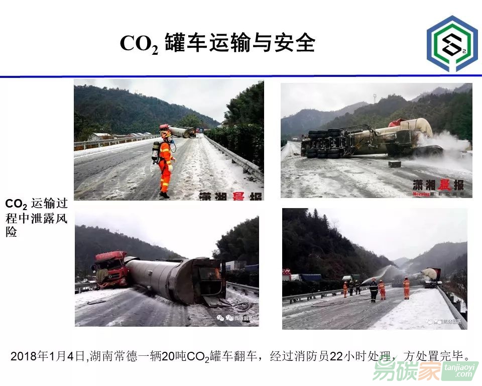 CO2罐車運輸與安全。罐車運輸包括管道會考慮到安全性,管道運輸?shù)絿鉀]有發(fā)生安全泄露問題,車運其實有很多這樣的安全事故。