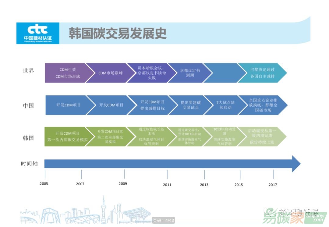 碳市場(chǎng),所以做了這個(gè)ppt,然后韓國(guó)碳市場(chǎng)做了一個(gè)全面的總結(jié)。所以這篇文章基本包含了我之前寫(xiě)的所有關(guān)于韓國(guó)碳市場(chǎng)文章的精華,在本文末還提供了一系列中國(guó)/外國(guó)企業(yè)參與韓國(guó)碳市場(chǎng)的方案,其實(shí)韓國(guó)碳市場(chǎng)現(xiàn)在非常類(lèi)似于2005年的
