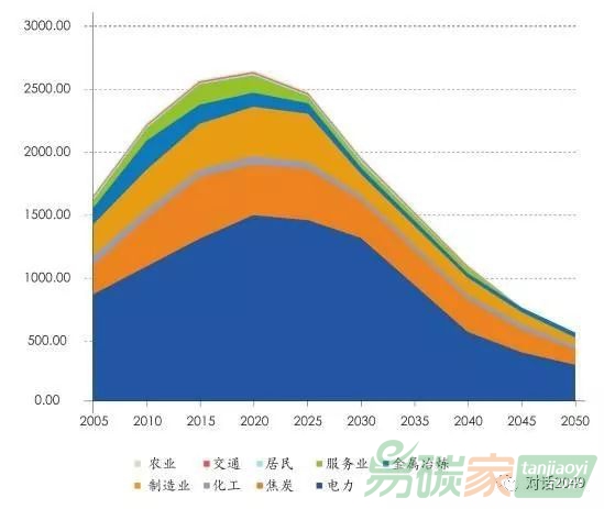 高比例情景下中國煤炭消耗分部門情況(百萬噸標準煤).《中國2050高比例可再生能源發(fā)展情景暨路徑研究》. 2015. 國家發(fā)展改革委員會能源研究所
