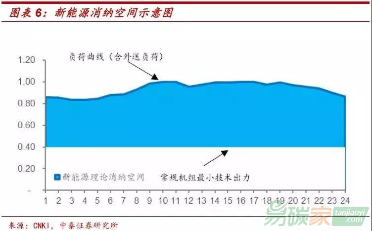 吉林在供暖和非供暖季,由于供暖季熱電聯(lián)產(chǎn)機(jī)組最小出力變大,調(diào)峰性能變差,導(dǎo)致蒙東、吉林供暖季新能源消納空間占用電負(fù)荷量的比例分別為39.1%和5.9%,低于非供暖季的81.5%和33.7%,這是冬季三北棄風(fēng)棄光嚴(yán)重的根本原因。