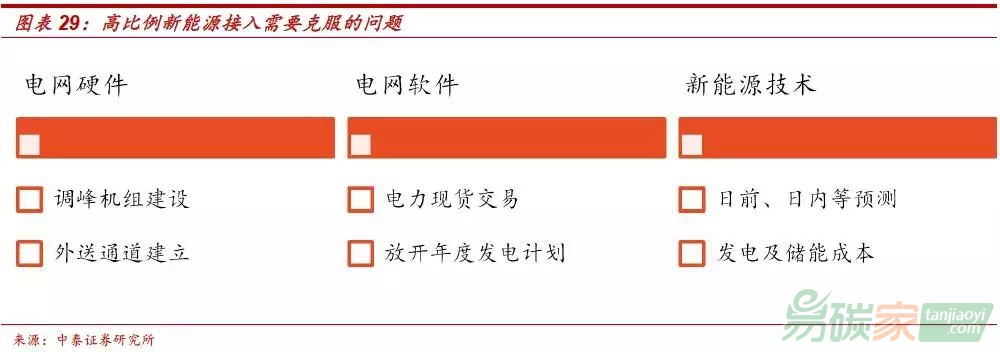電源結(jié)構(gòu)、電力體制以及新能源技術(shù)是高比例接入必須克服的問題。在新能源高比例接入背景下,對(duì)電網(wǎng)硬件來說,要求電網(wǎng)調(diào)峰能力足夠強(qiáng),同時(shí)具有互聯(lián)互通的通道;對(duì)電網(wǎng)軟件來說,要求可以實(shí)現(xiàn)電力現(xiàn)貨交易,以及放開年度發(fā)電計(jì)劃;對(duì)于新能源技術(shù)來說,要求實(shí)現(xiàn)日前、日內(nèi)精準(zhǔn)發(fā)電預(yù)測(cè),同時(shí)發(fā)電和儲(chǔ)能成本較低。