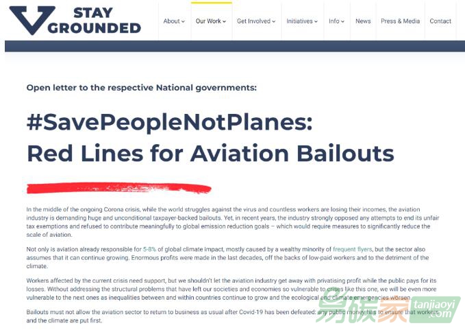 針對這些要求, 全球250多個工會和環(huán)保團體以StayGrounded的名義發(fā)表公開信,要求各國政府采取的任何救助措施都將改善勞動條件,減少