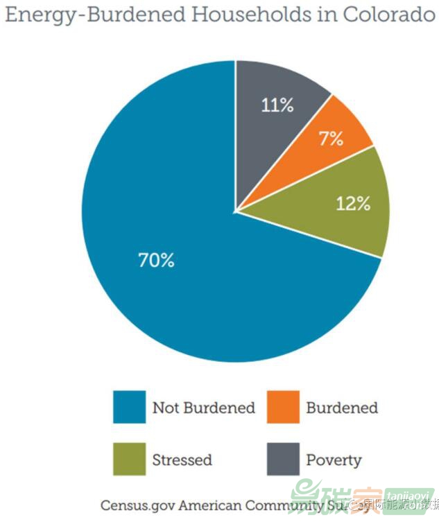 以美國科羅拉多州2015年的調(diào)查數(shù)據(jù)為例,70%的居民家庭沒有負(fù)擔(dān),7%屬于“能源負(fù)擔(dān)”、12%屬于“能源焦慮”、11%屬于能源貧困。