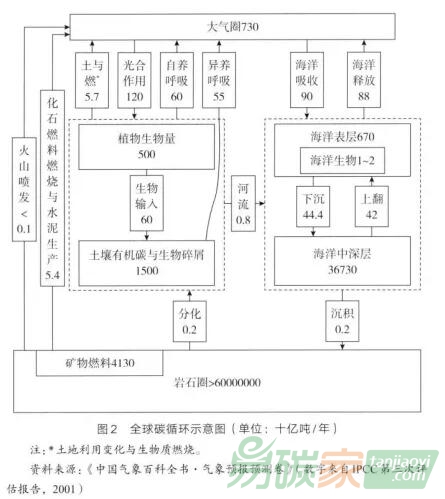 地球上的碳循環(huán)主要表現(xiàn)為自然生態(tài)系統(tǒng)的綠色植物從空氣中吸收二氧化碳,經(jīng)光合作用轉(zhuǎn)化為碳水化合物并釋放出氧氣,同時又通過生物地球化學(xué)循環(huán)過程及人類活動將二氧化碳釋放到大氣中。自然生態(tài)系統(tǒng)的綠色植物將吸收的二氧化碳通過光合作用轉(zhuǎn)化為植物體的碳水化合物,并經(jīng)過食物鏈的傳遞轉(zhuǎn)化為動物體的碳水化合物,而植物和動物的呼吸作用又把攝入體內(nèi)的一部分碳轉(zhuǎn)化為二氧化碳釋放人大氣,另一部分則構(gòu)成了生物的有機(jī)體,自身貯存下來;在動、植物死亡之后,大部分動、植物的殘體通過微生物的分解作用又最終以二氧化碳的形式排放到大氣中,少部分在被微生物分解 之前被沉積物掩埋,經(jīng)過漫長的年代轉(zhuǎn)化為化石燃料(煤、石油、天然氣等),當(dāng)這些化石燃料風(fēng)化或作為燃料燃燒時,其中的碳又轉(zhuǎn)化為二氧化