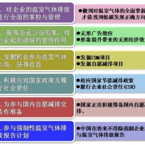 對于需要編制溫室氣體排放清單的企業(yè),首先要根據(jù)企業(yè)的特點(diǎn)開發(fā)專門針對該企業(yè)的編制指南,然后再根據(jù)該指南進(jìn)行數(shù)據(jù)搜集及計(jì)算。再根據(jù)計(jì)算結(jié)果進(jìn)行相關(guān)分析,使企業(yè)的決策者對企業(yè)的溫室氣體排放更加一目了然。最 ...